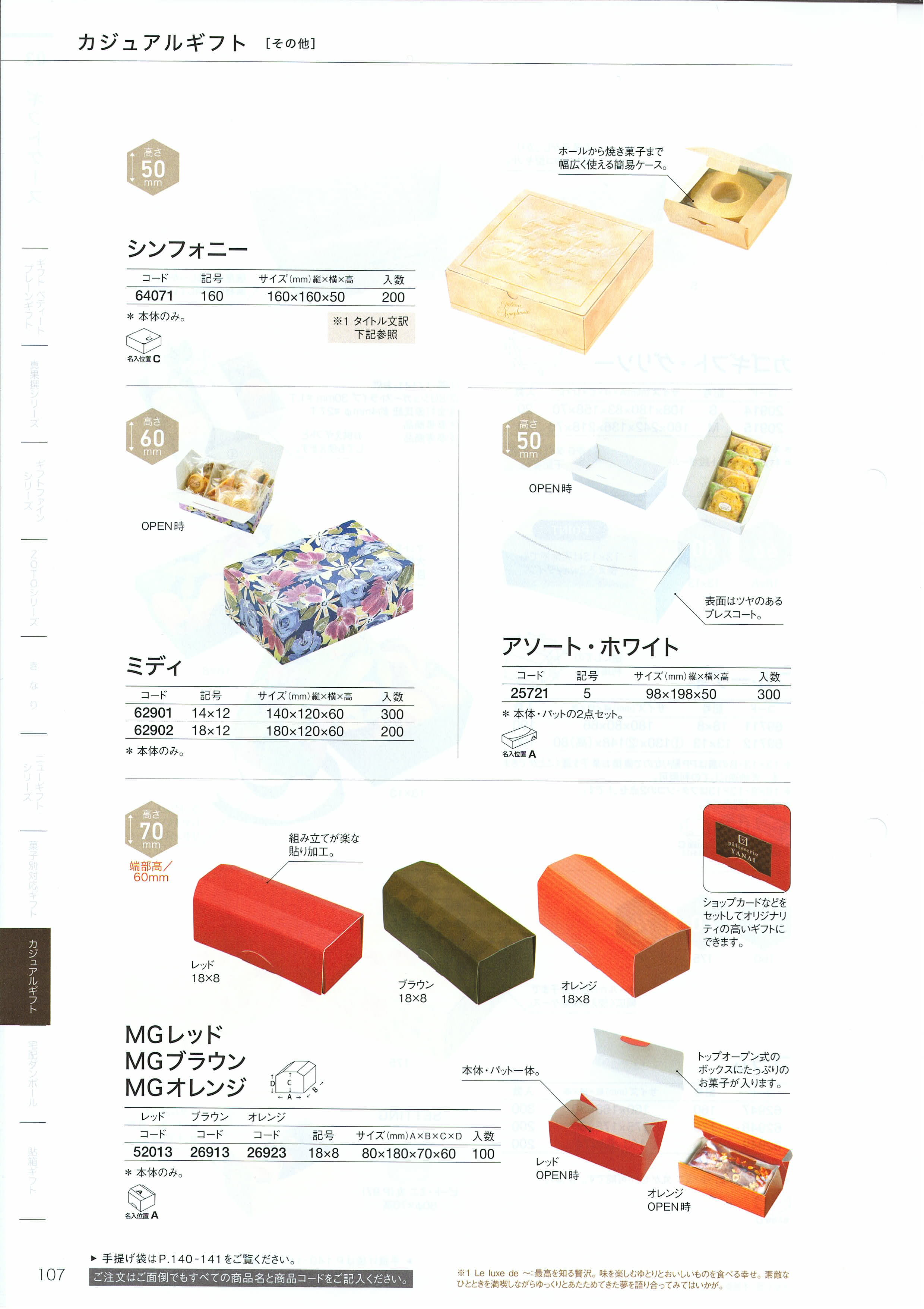 | 商品名 | 記号 | 長辺 | 短辺 | 高さ | 分類 | 入数 | |