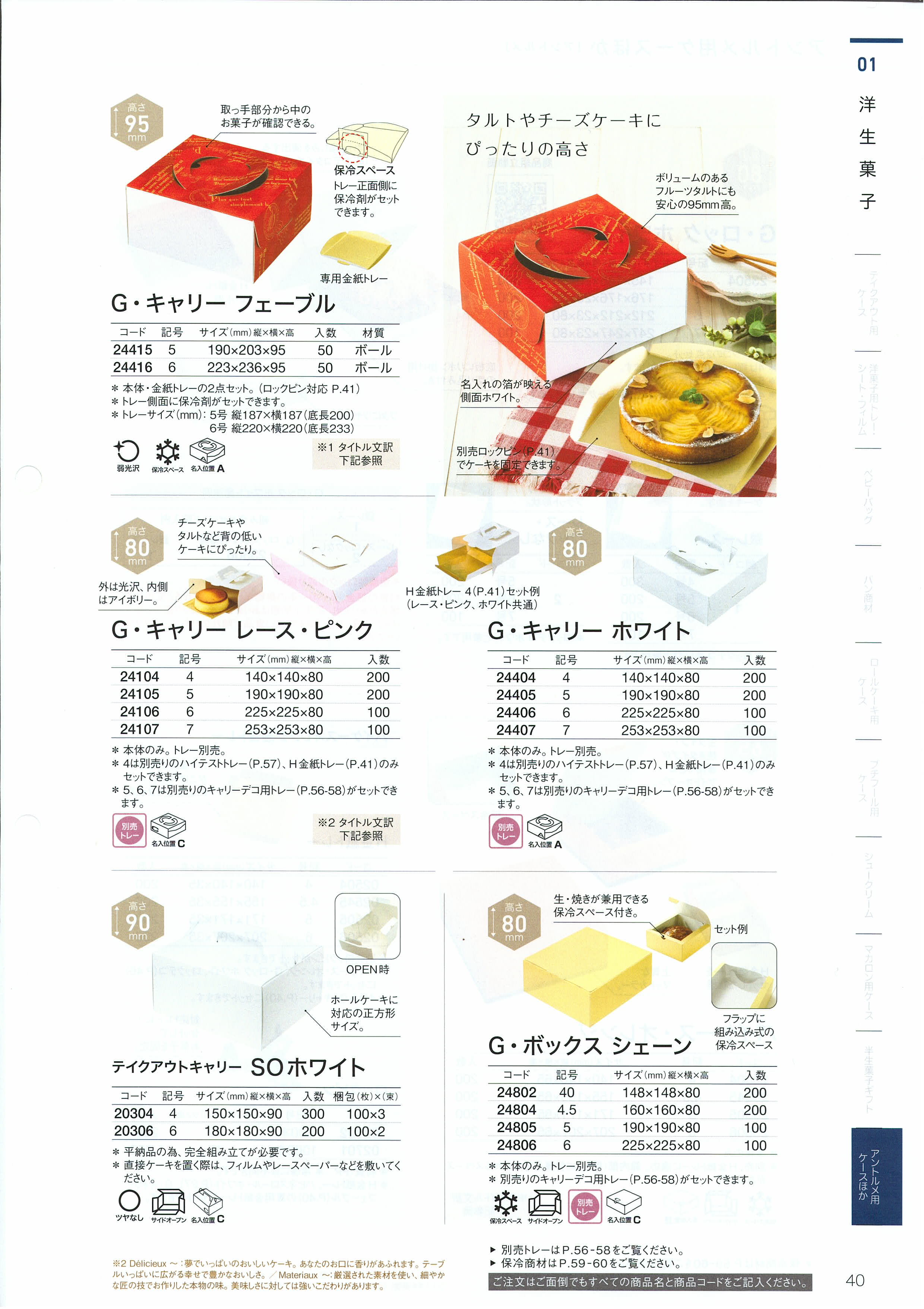 G・キャリー フェーブル(金紙トレー付) | 5 | 190 | 203 | 95 | 洋生菓子ケース | 50 |