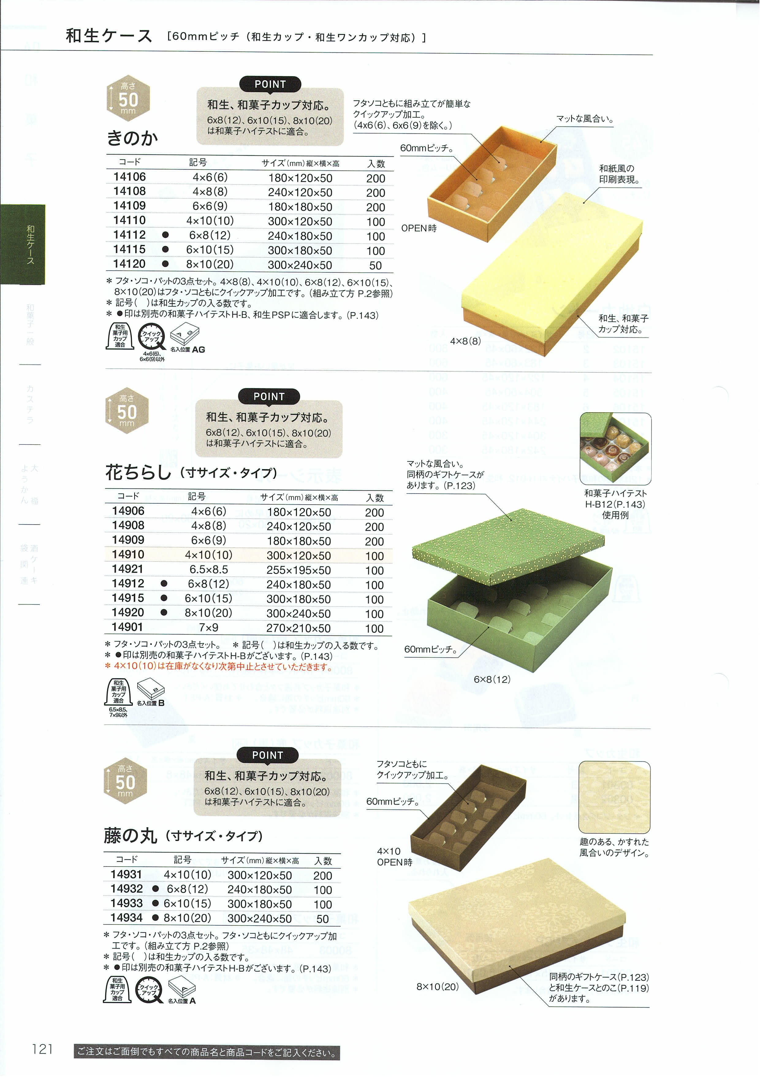 きのか | 6X8(12) | 240 | 180 | 50 | 和菓子ケース | 100 |