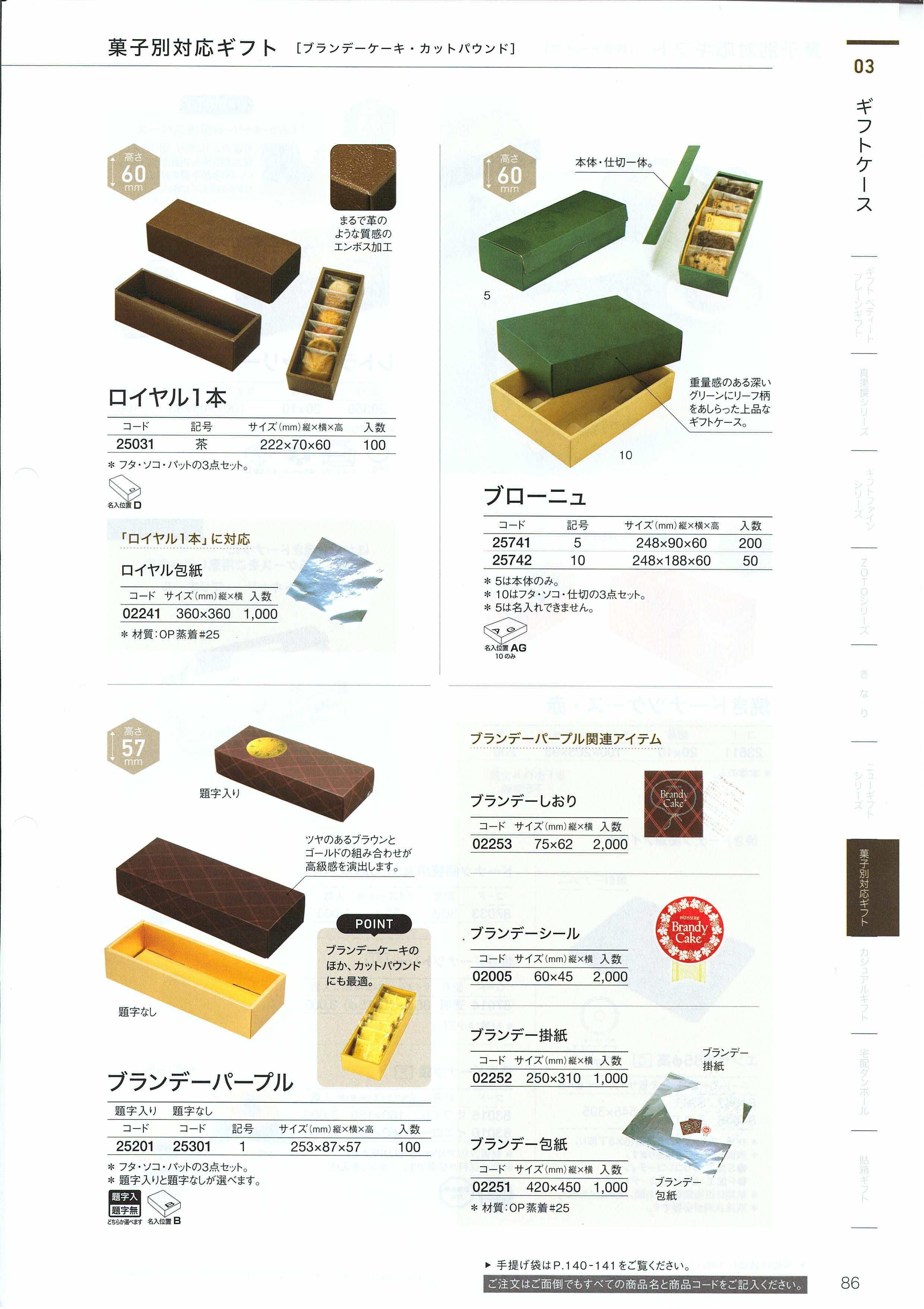 白地カートン | 5 | 304 | 60 | 45 | 和菓子ケース | 400 |