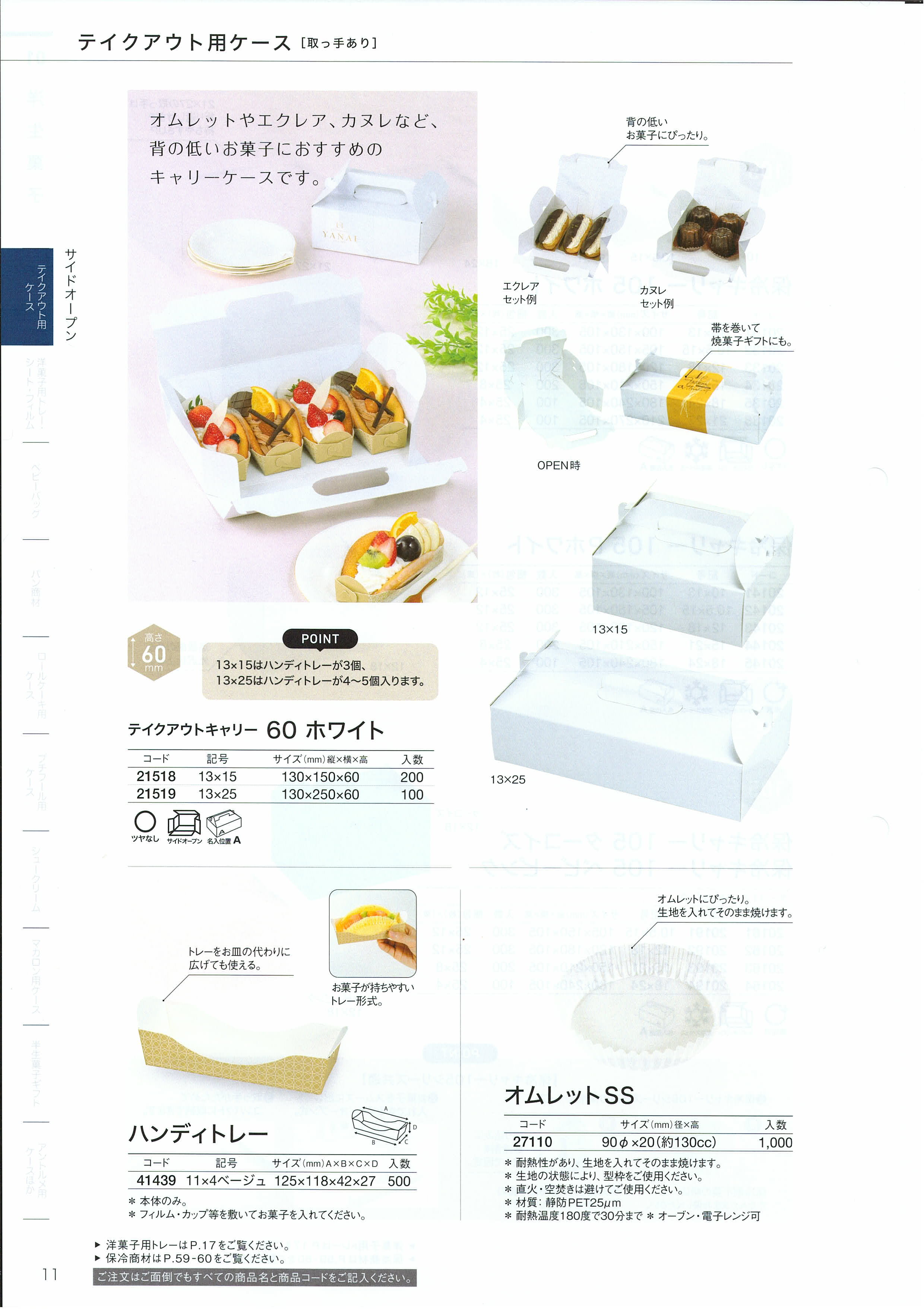 テイクアウトキャリー61 ホワイト | 13X25 | 130 | 250 | 60 | 洋生菓子ケース | 100 |