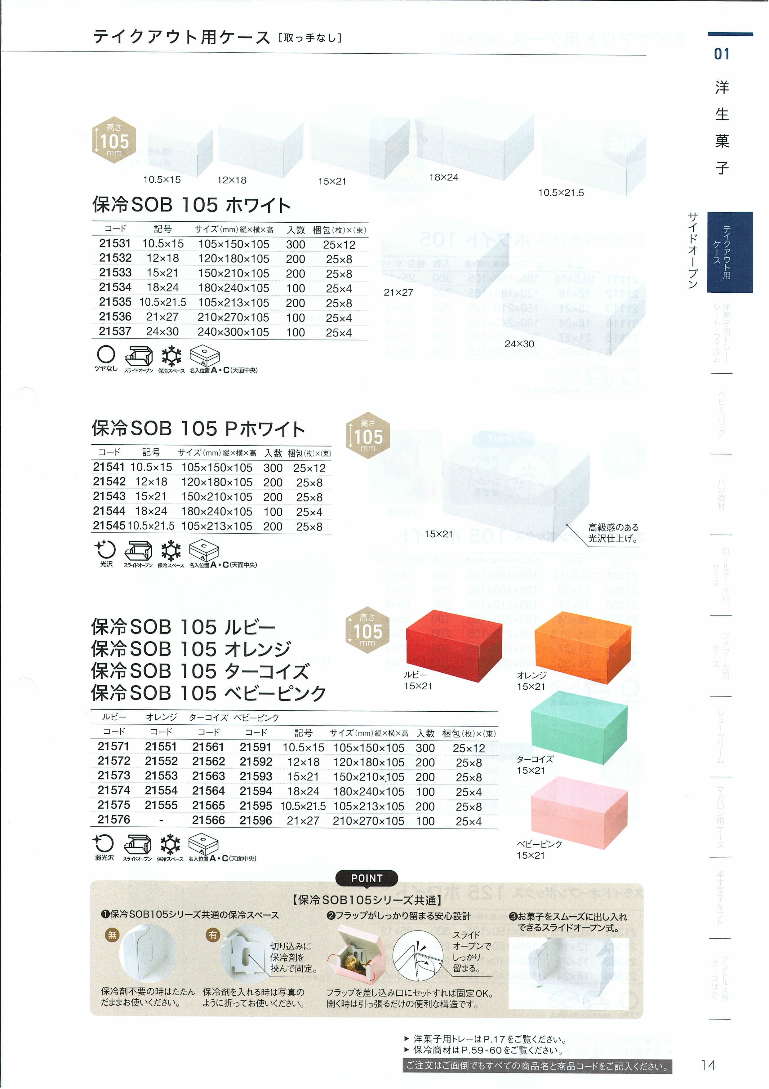保冷SOB105 ホワイト | 10.5X15 | 105 | 150 | 105 | 洋生菓子ケース | 300 |