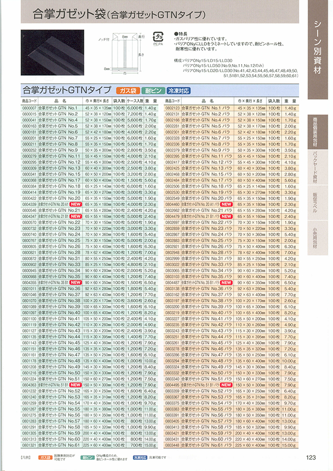 合掌ガゼットGTN No.1 | 45 | 35 | 135 | ガゼット袋 | 透明 | 有 |