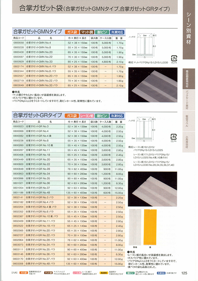 合掌ガゼットGR No.3 | 52 | 38 | 130 | ガゼット袋 | 色柄 | 有 |
