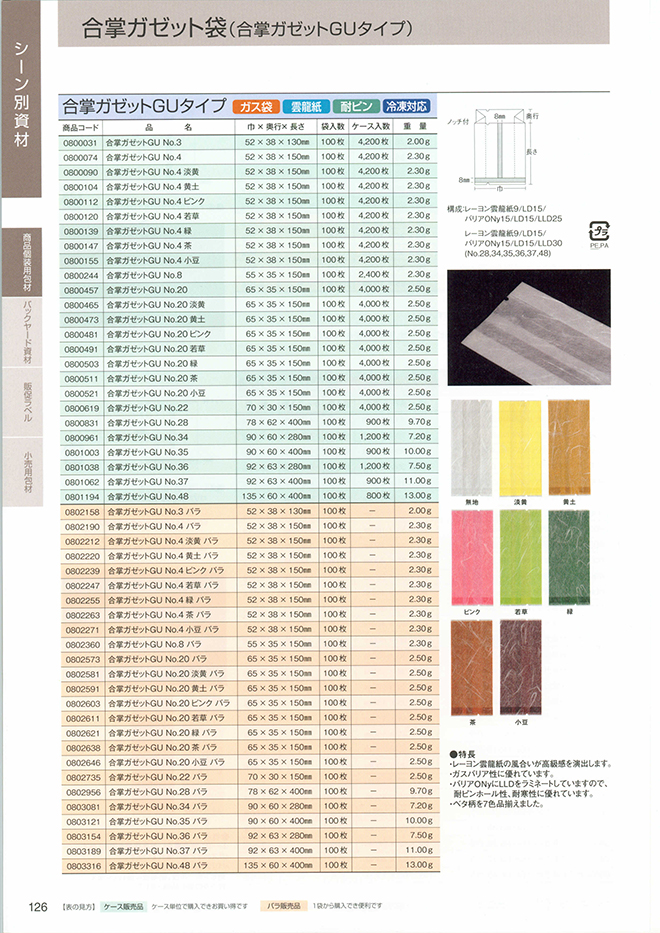 合掌ガゼットGU No.3 | 52 | 38 | 130 | ガゼット袋 | 色柄 | 有 |