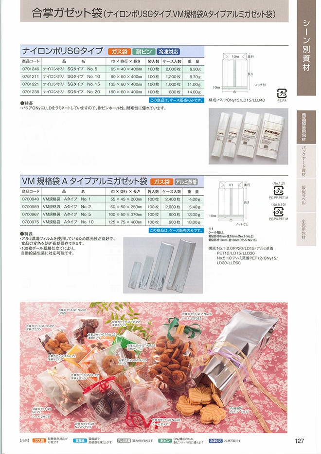 ナイロンポリ SGタイプ No.5 | 65 | 40 | 400 | ガゼット袋 | 透明 | 有 |